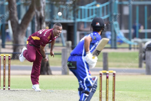 Dinesh Nuwan Kulasekara (Dandenong West) bowls to Harmanpreet Singh (Parkmore). 509518_02
