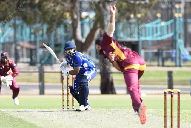 Lochana Premarathna (Parkmore) faces a ball from Joel Zietsman (Dandenong West). 509518_19