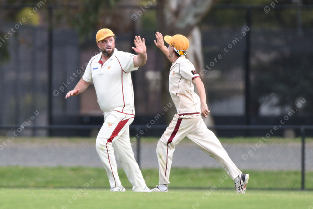 Lee Brown (Hallam, left) catches a ball from Ishan Jayarathna (Buckley Ridges). 517384_26