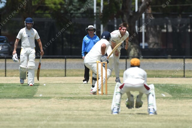Jordan Hammond (Hallam) bowls to Morteza Ali (Narre South). 452633_20