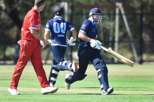 Bowler Josh Dowling (Springvale South) watches Jake Cronin (Buckley Ridges, middle) and Jayson Hobbs (right). 462200_11