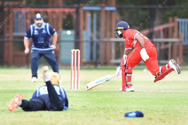 Ayush Patel (Buckley Ridges) works to return the ball as Chathuranga De Silva (Springvale South) enters the frame. 525927_18