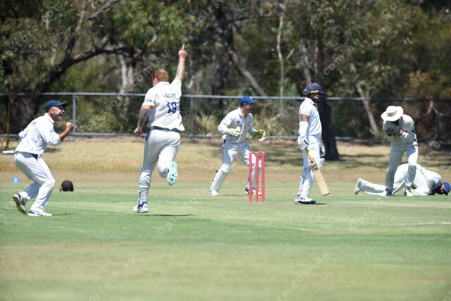 Batsman Duveen Sasindu Arachchige (St Marys) is caught on this ball by Lance Baptist (Coomoora, I think thats him on his knees). 456344_03