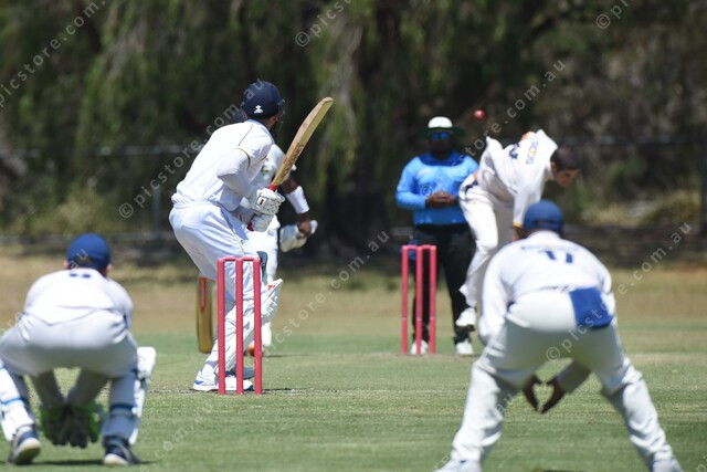 Scott Berger (St Marys) faces a ball from Jackson Noske (Coomoora). 456344_17
