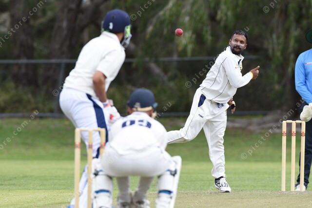 Krishan Alang (Coomoora) bowls to Tanbir Singh (Silverton). 517381_06