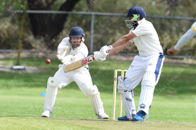 Tanbir Singh (Silverton) hits a ball from Malan Madusanka (Coomoora). 517381_18