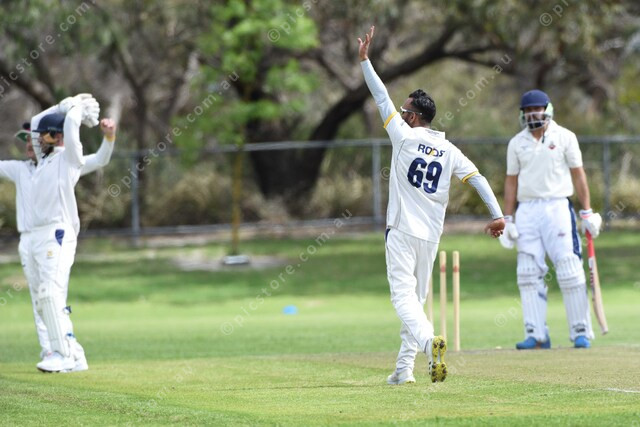 Tanbir Singh (Silverton) is out, bowler Malan Madusanka (Coomoora) arm in the air. 517381_22