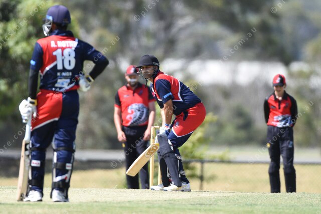 Rohit Sandhu (Silverton) faces a ball from bowler Ryan Patterson (HSD). Silverton teammate Amardeep singh Hothi watches. 527665_19