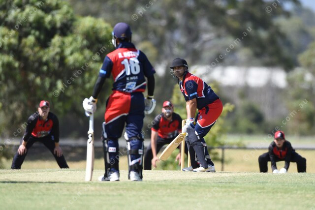 Rohit Sandhu (Silverton) faces a ball from bowler Ryan Patterson (HSD). Silverton teammate Amardeep singh Hothi watches. 527665_21
