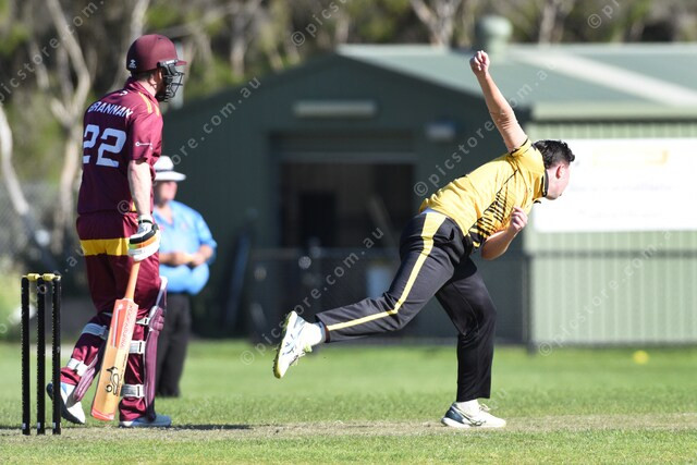 Mitchell Kidd (Beaconsfield) bowls to Nipunaka Fonseka (Dandenong West). Batsman in this pic, Anthony Brannan (Dandenong West). 514280_14
