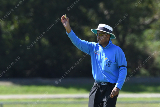 Umpires seek a replacement for a shattered bail. 514278_02