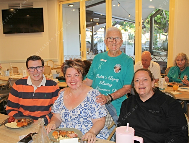 Dean Rowe (standing) with City of Onkaparinga’s Young Citizen of the Year Callum Barrott-Walsh, Lorraine Kristaly and Tiffany Short at the Judith’s Legacy breakfast fundraiser. (Dee Elferink: 532641_03)