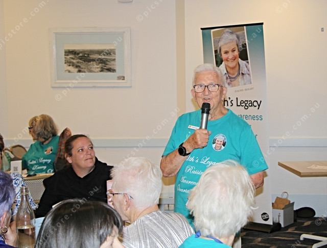 Dean Rowe speaking about his wife Judith at his annual ovarian cancer fundraising breakfast for Judith’s Legacy. (Dee Elferink:532641_11)