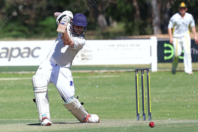 Lions opener Chris Graser shows solid technique with his cover drive. (524624_04)