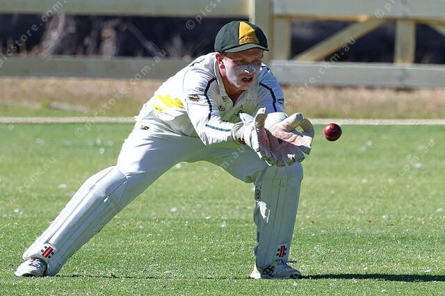 Zac Kreutner working behind the stumps for the Cockatoos. (524624_11)