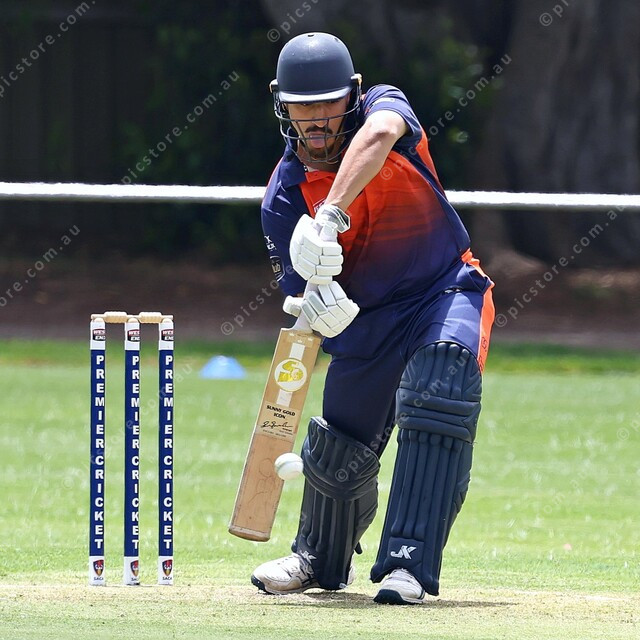Kabir Luthra plays a straight bat to protect his stumps. (521353_10)