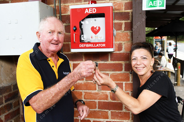 Monbulk Rotary and District Co President Rob Clark hands over the key to Nat Collins owner of The Patch Store 462782_09