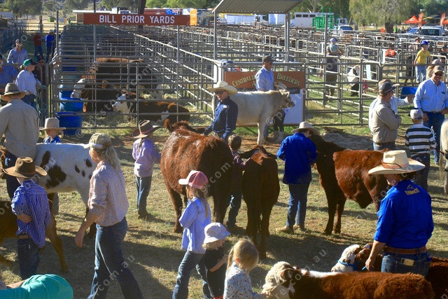 SHOW RING: The show ring at the Bill Prior Yards full of young cattle handlers at the 2025 Alice Springs SHow. (PIC: PHIL WILLIAMS 488143_05)