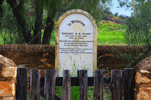HEADSTONE: Ebenezer Flint was the first of five people to be buried at the Alice Springs Telegraph Station’s cemetery. (PIC: PHIL WILLIAMS 538804_03)