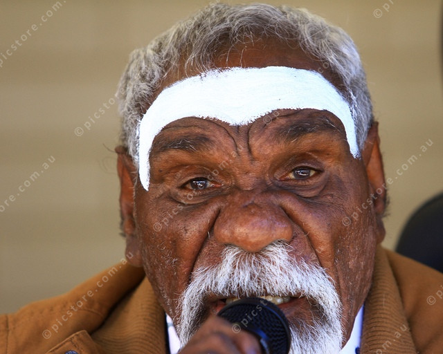 TEARS: Tears well in Ned Jampijinpa, eyes as he speaks about his grandson during the vigil. (PIC: PHIL WILLIAMS 481525_07)