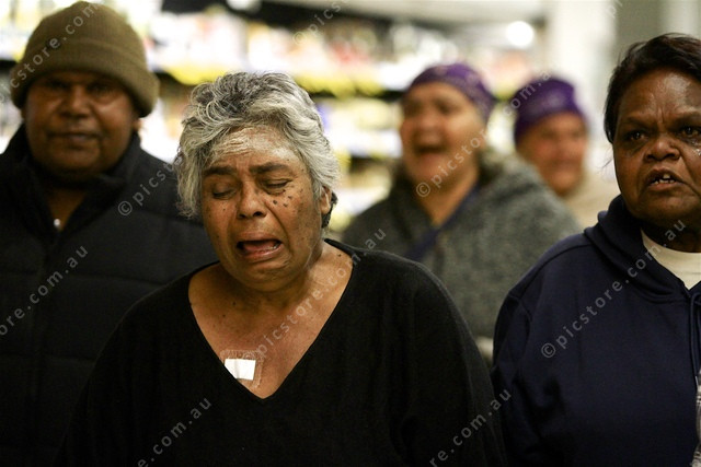TORMENTED: A female family member is wracked by grief as the group walk through the supermarket. (PIC: PHIL WILLIAMS 481525_10)
