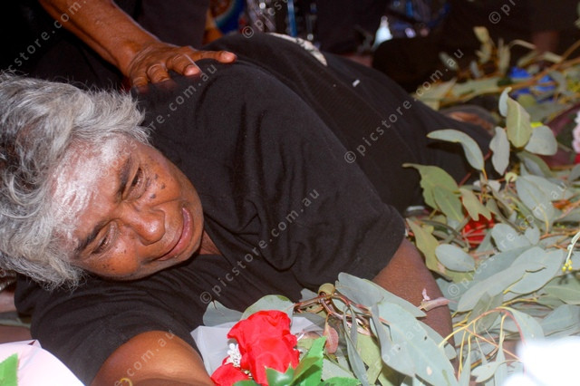 DISTRESSED: Burdened by grief a female family member mourns at the memorial to the young man. (PIC: PHIL WILLIAMS 481525_13)
