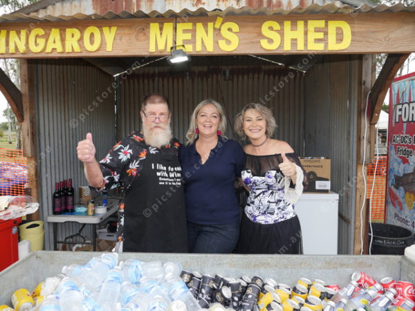Father Ian Bailey, Myolene Kearney with Natalie Fenton in the Kingaroy Men’s Shed bar. 467250_04