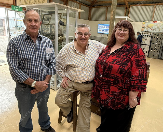 Graham Buttery, from the Yankalilla Museum Committee, with David Fyfe and Natalie Laverick, of Willow Creek. (Mark Liebich: 471033_06)