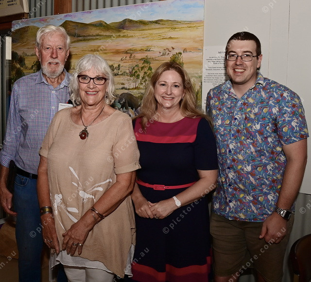 Rob Ryan, Gay Robertson, Member for Mayo Rebekha Sharkie, and Aaron Camens in front of the artwork Gay created. (Mark Liebich: 471033_08)
