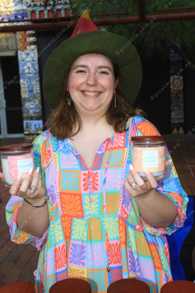 CANDLES: Dressed for the occasion, Jaimee Inglis shows off her hand made candles at the Diwali night markets. (PIC: PHIL WILLIAMS 442603_06)