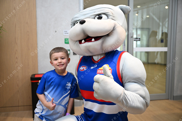 Program where parents can access skills. Pic of Tate (5) with the Bulldogs mascot. (Damjan Janevski). 489983_04