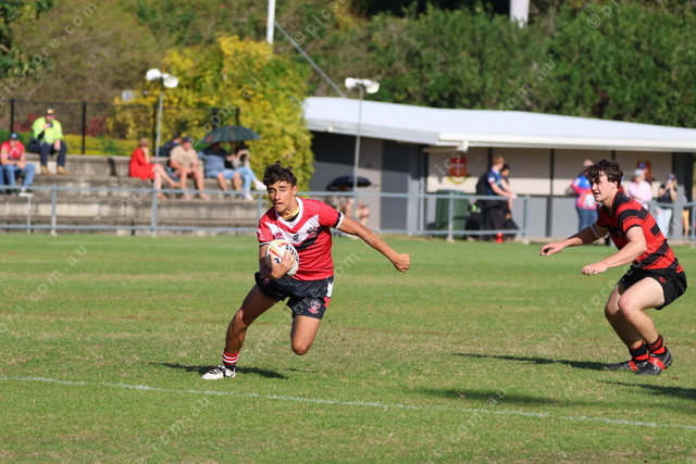 Shalom’s Koby Walsh puts on a step to fool the RGS defence.