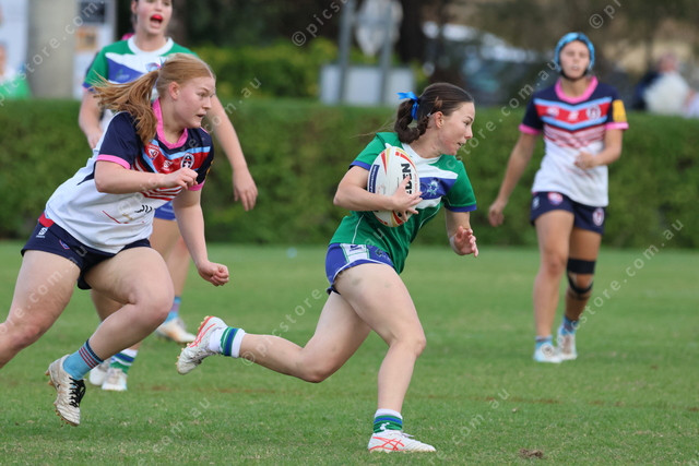 TCC’s Josie Wogand scoops up the ball and sprints away.