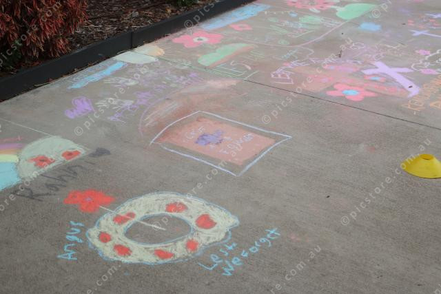 The year 6 students drew sunsets, poppies and the Lest we Forget message.