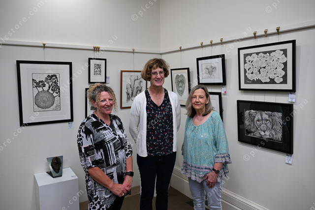 Dromkeen Gallery is hosting the Wonder of Nature exhibition. Pic of artist and curator Kathy Madbury, artist Robyn MIntyre and owner Bernadette Joiner. Photo by Damjan Janevski. 472066_05