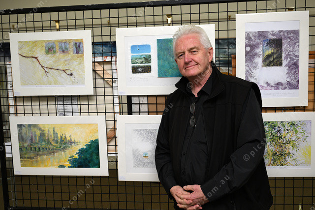 Pic of Mark Wilson with his artwork at Dromkeen, Riddells Creek. Photo by Damjan Janevski. 482896_04