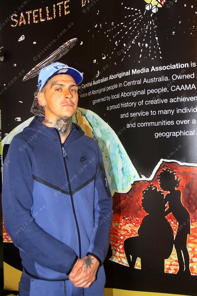 MUSIC: Dylan Voller was one of several musicians assisting with a workshop at the CAAMA studios during NAIDOC Week. (PHIL WILLIAMS 489673_04)