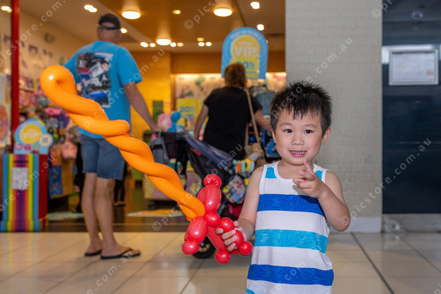 3yo Ethan from Pakenham with his sword of twisted balloons.