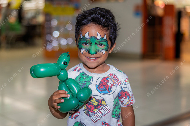 4yo Dion from Pakenham had face painting and a monster made of twisted balloons.