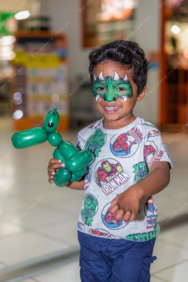 4yo Dion from Pakenham had face painting and a monster made of twisted balloons.