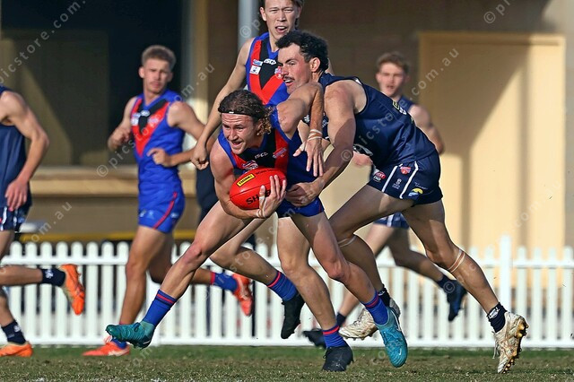 Lachlan Thomas, Eastern, is tackled by Cameron Ker, Southern.