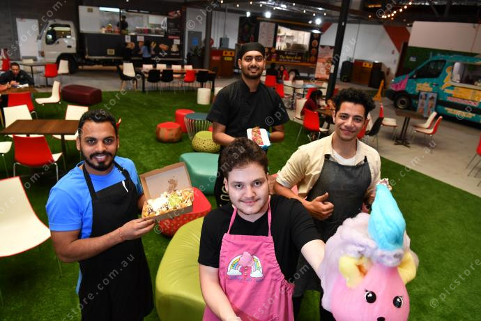 Craigieburn Central have launched the “stre-eatery”. Pic of Rajvir Dhillon; Peter Dennison; Yusef El-Leissy and Bhupinder. Photo by Damjan Janevski. 258110_03