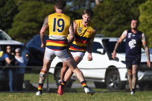 Brayden Chandler kicks a goal (right) and celebrates with Jason Wells 476827_10