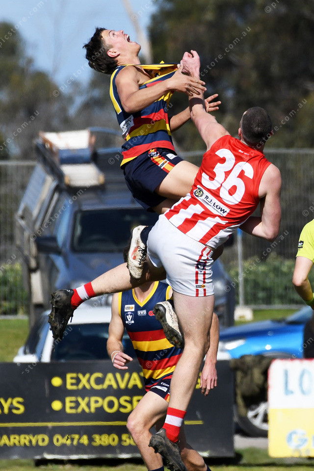 Lachlan Willis and Dylan Farrell in a centre circle ruck contest 497916_10