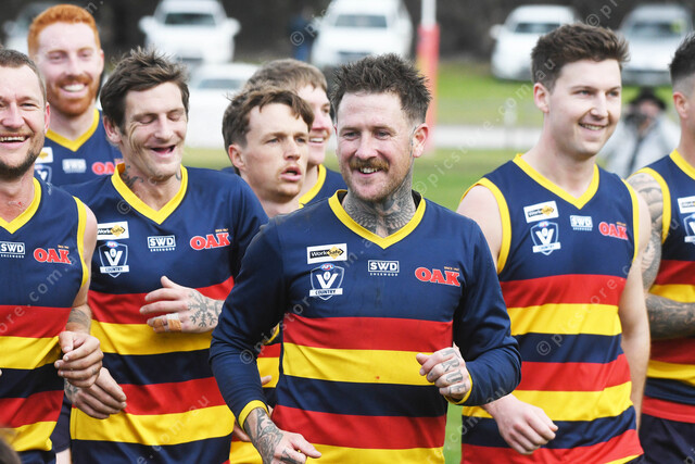 Jason Wells happy as the Crows run off for the half time break. 482702_13