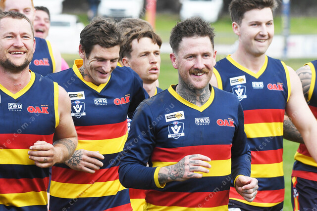 Jason Wells happy as the Crows run off for the half time break. 482702_14