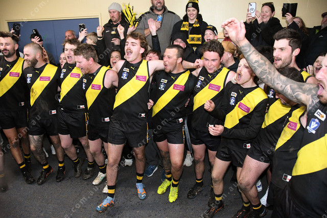 FOOTY SHORTS Lang Lang reserves players sing the song with gusto after the win 499242_11