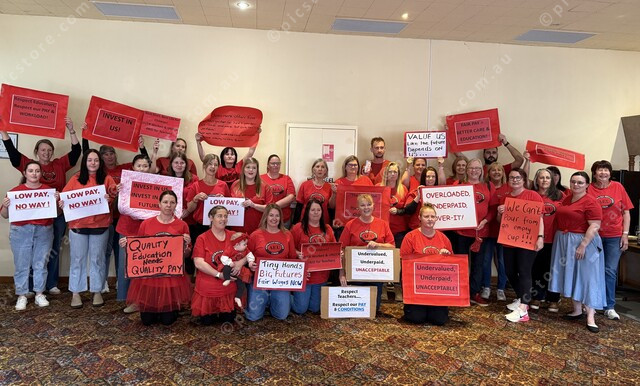 Victorian pre-school teachers make stop action. Picture: Tiana Martin