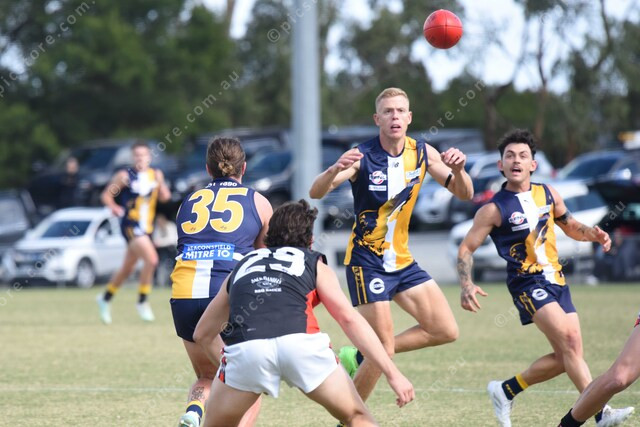 Myles Currie (35 Beac, left) passes to Jake Bowd (2 Beac). Right is Tylah Stokoe (1 Beac). 469881_36