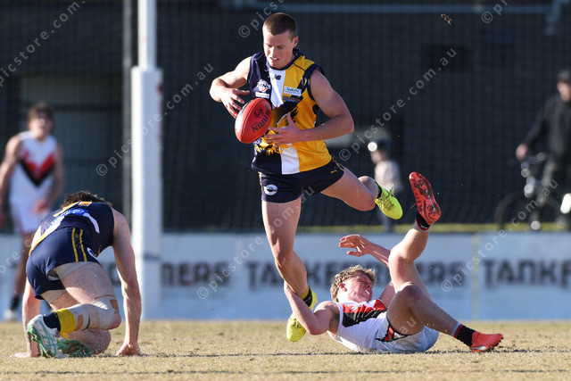 Jamie Roberts (19 Beaconsfield) with the ball, leaps over Will Bromley (22 South Belgrave). 488312_05